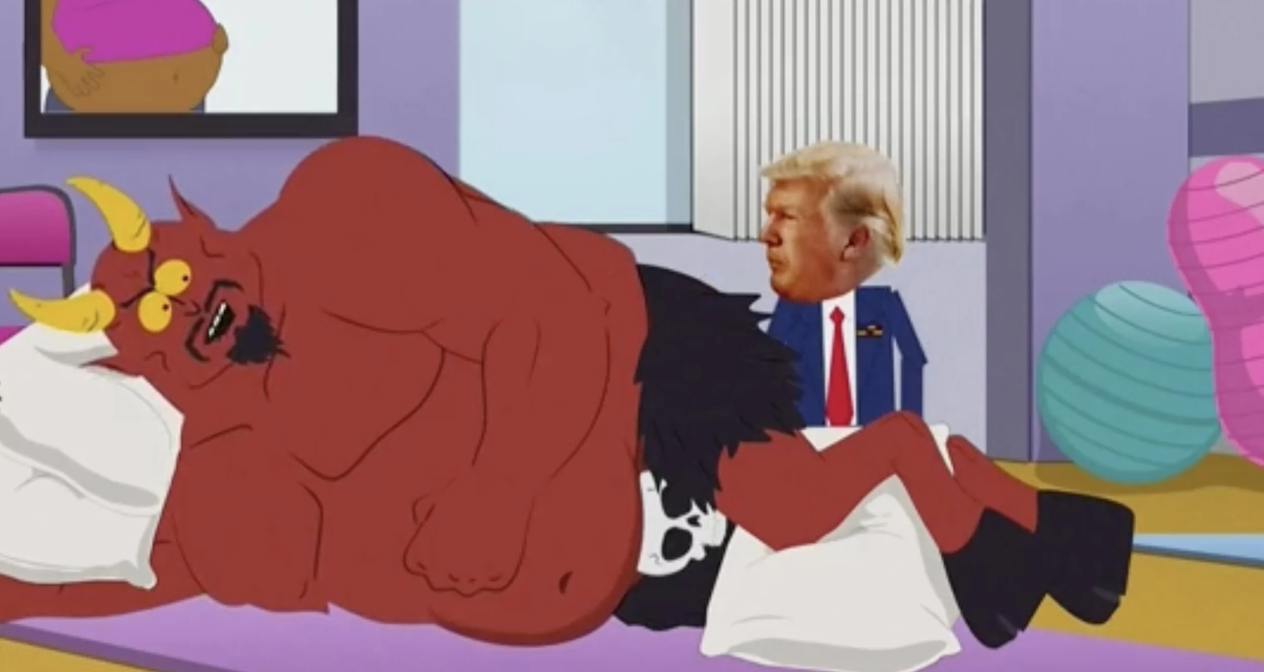 Тиль погружается в демонические легенды: выясняется, что после битвы на небесах Бог наказал Сатану, уменьшив его анальное отверстие до крошечного размера, и только микроскопический половой орган Трампа (примерно 6–7 сантиметров) теоретически может обеспечить зачатие демонического ребёнка.